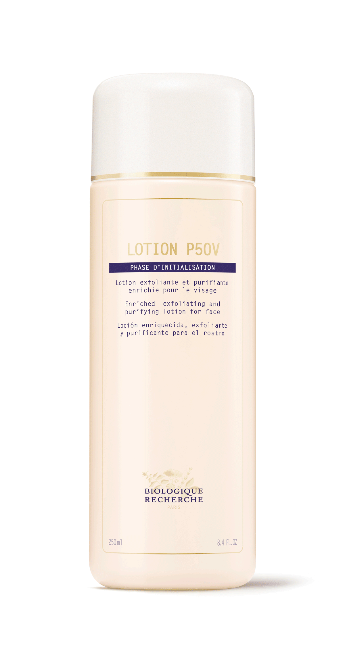 Lotion P50V is a vitamin-enriched exfoliating lotion that gently purifies, mattifies, moisturizes and rebalances the pH of the epidermis.