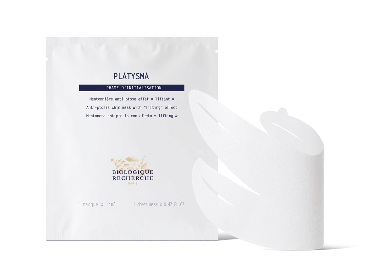With its unique shape and stretchy tissue tailored to the area under the chin, Platysma combines the benefits of an anti-gravity and anti-ptosis mask in a single step. The support’s mechanical action combined with firming active ingredients is similar to a face massage and tighten the skin.Facial volumes are more harmonious and the face contours are revealed.
